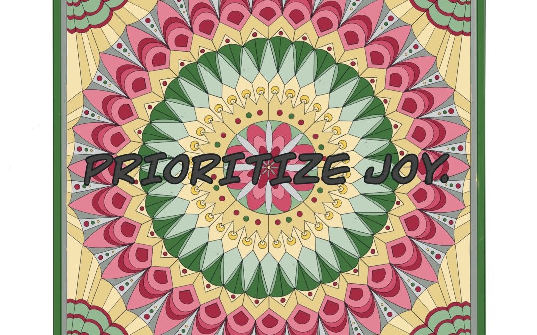 Prioritize Joy. This coloring page is from Live Your Dreams Coloring Journal.